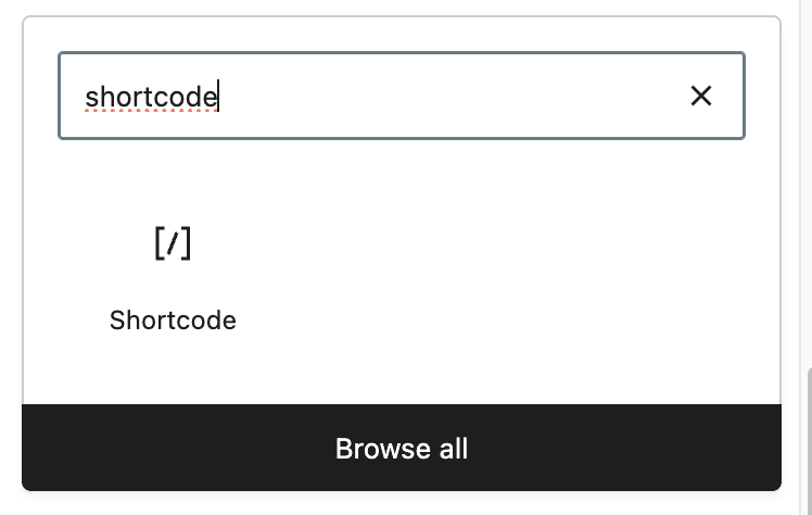 2. After logging in, go to the page where you want to add media. Select the Shortcode block from the available options.