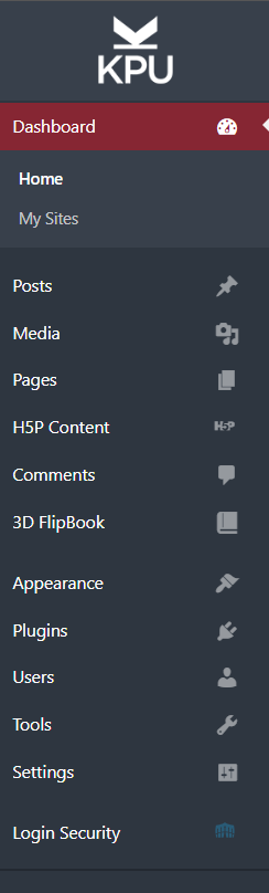 2. Dashboard Navigation running down the left hand side