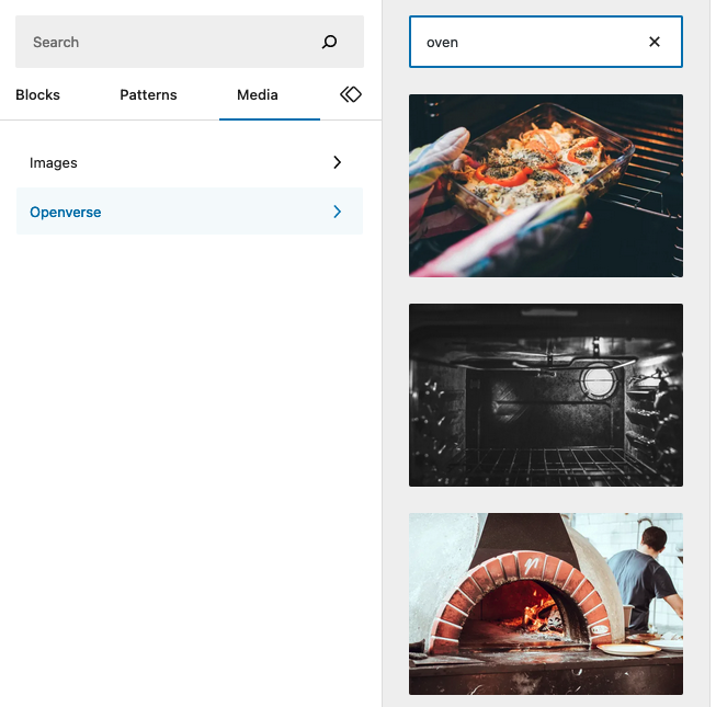 Open licensed media content can now be easily searched and inserted into your editor. The open-source search engine searches over 600 million creative common and public domain image and audio files. All of the content is under a Creative Commons license or is in the public domain