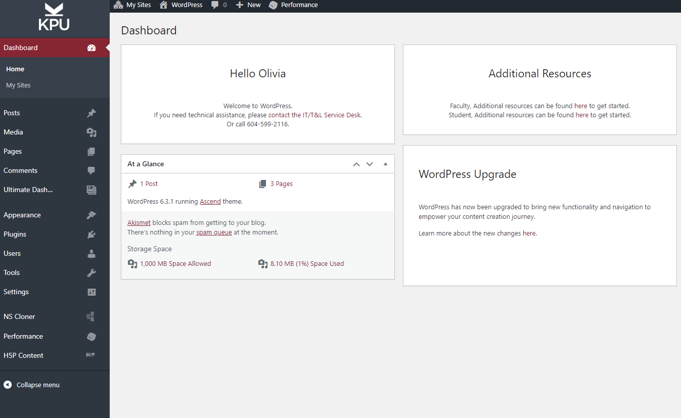 In Fall 2023, KPU WordPress will be receiving an update from version 5.9 to 6.3.1. This upgrade brings significant improvements to the navigation and editing functionalities of both existing and future WordPress sites. To simplify these changes, it is impossible to identify every new feature. Hence, we have purposefully selected to address only features which we think will be beneficial to our current WordPress users.