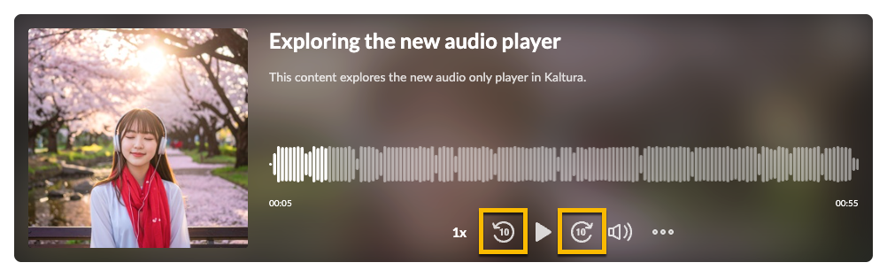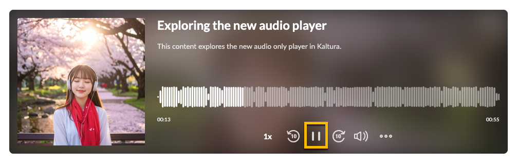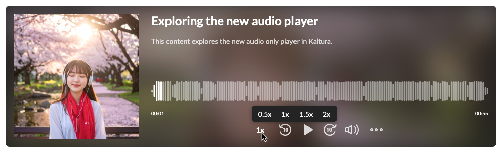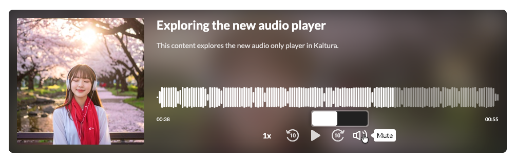 The Kaltura's audio player is tailored for audio tracks. Its slim profile ensures a smaller footprint than the normal video player (taking up unnecessary space).